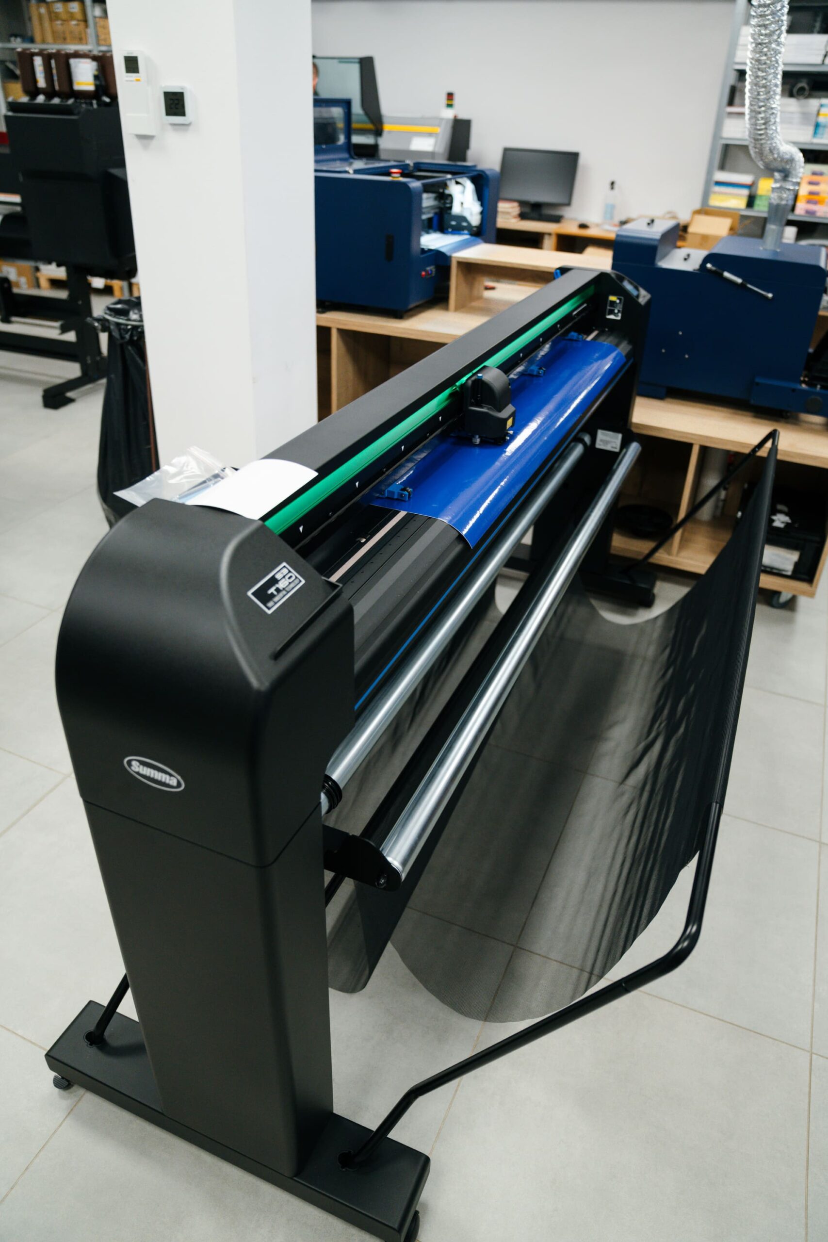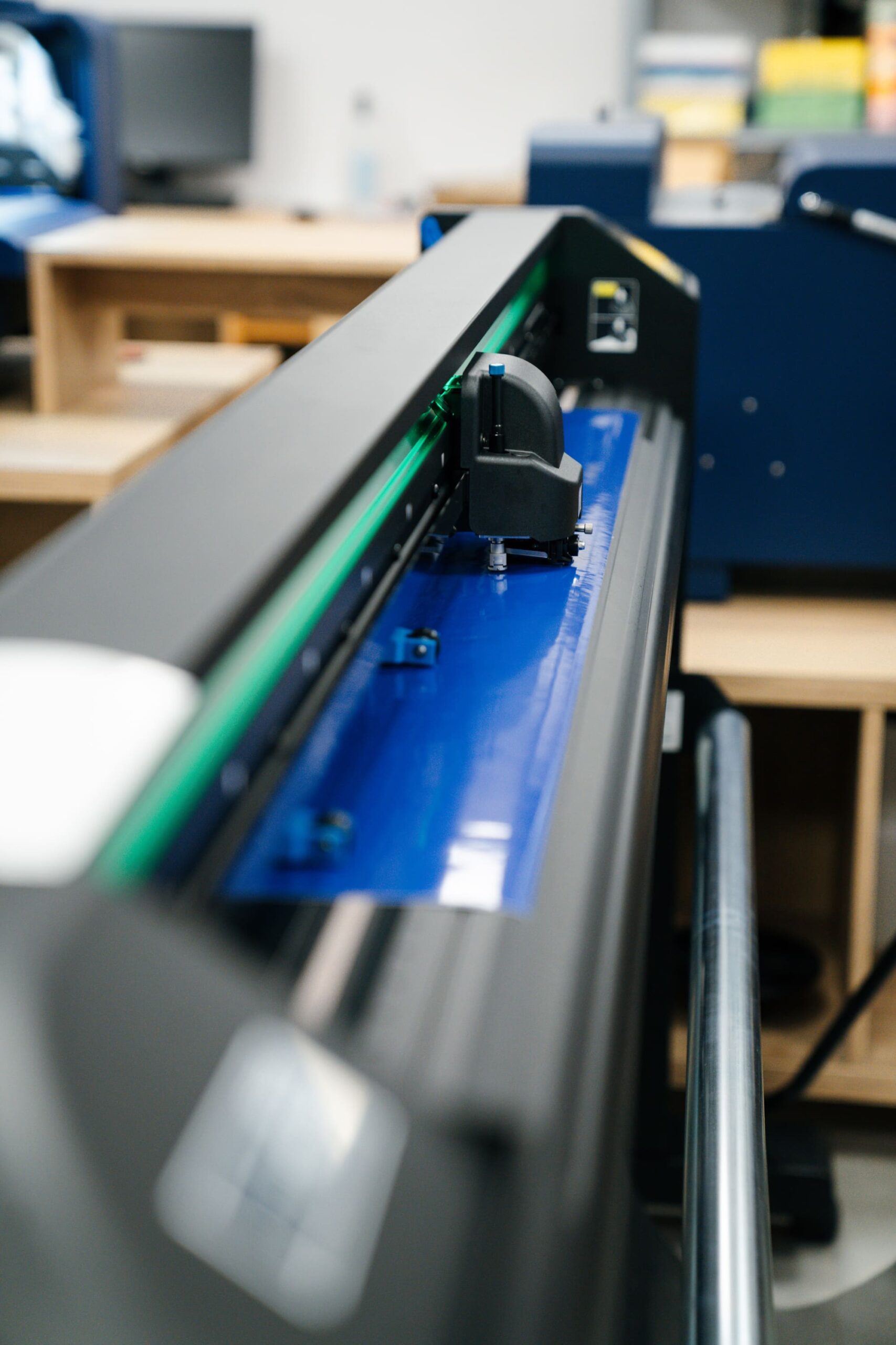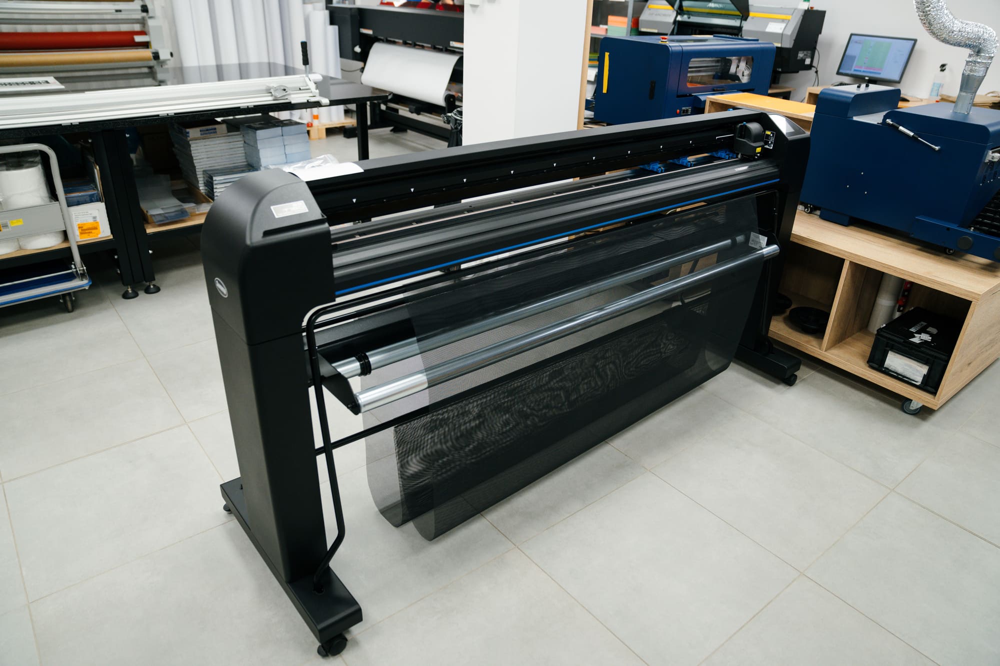 Rezanie prebieha na základe vektorových dát. Používame tangenciálny nôž s motoricky riadenou čepeľou, ktorý zabezpečuje vysokú presnosť aj pri malých detailoch a umožňuje rezanie aj hrubších materiálov. K dispozícii je kontúrové rezanie aj rezanie cez celý materiál. Plotter je vybavený OPOS senzorom na načítanie registračných značiek, čo umožňuje rezanie už potlačených materiálov.